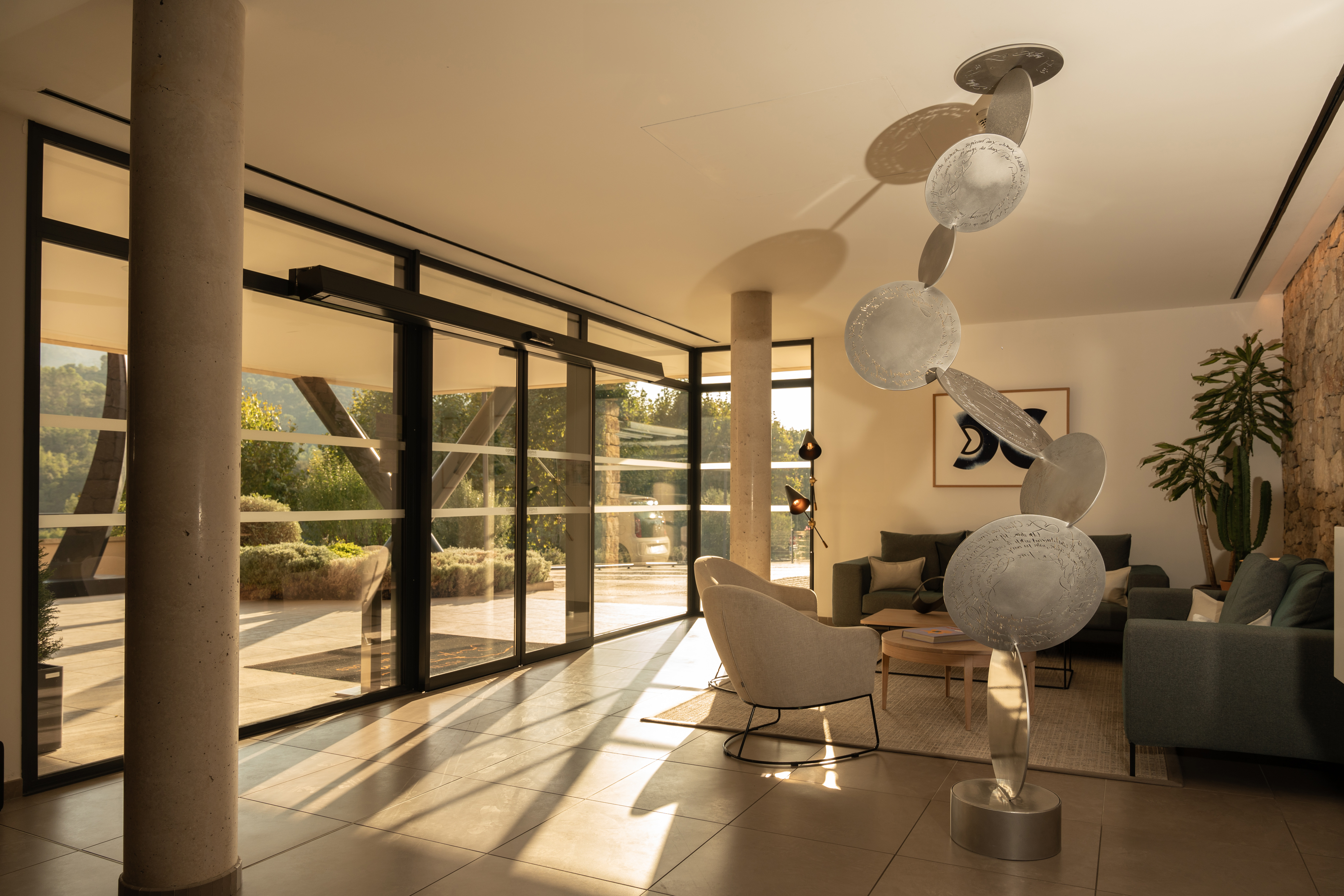 L’Hôtel Sainte Victoire à Vauvenargues ouvre ses portes avec une identité artistique marquée et singulière. Les estampes grand format de Marie Guerrier arborent les murs des différents espaces intérieurs, les sculptures monumentales de son père Francis s’élancent sur le parvis et dans l’escalier principal tandis que le geste calligraphique de Nicolas Ouchenir signe l’identité visuelle du lieu.
